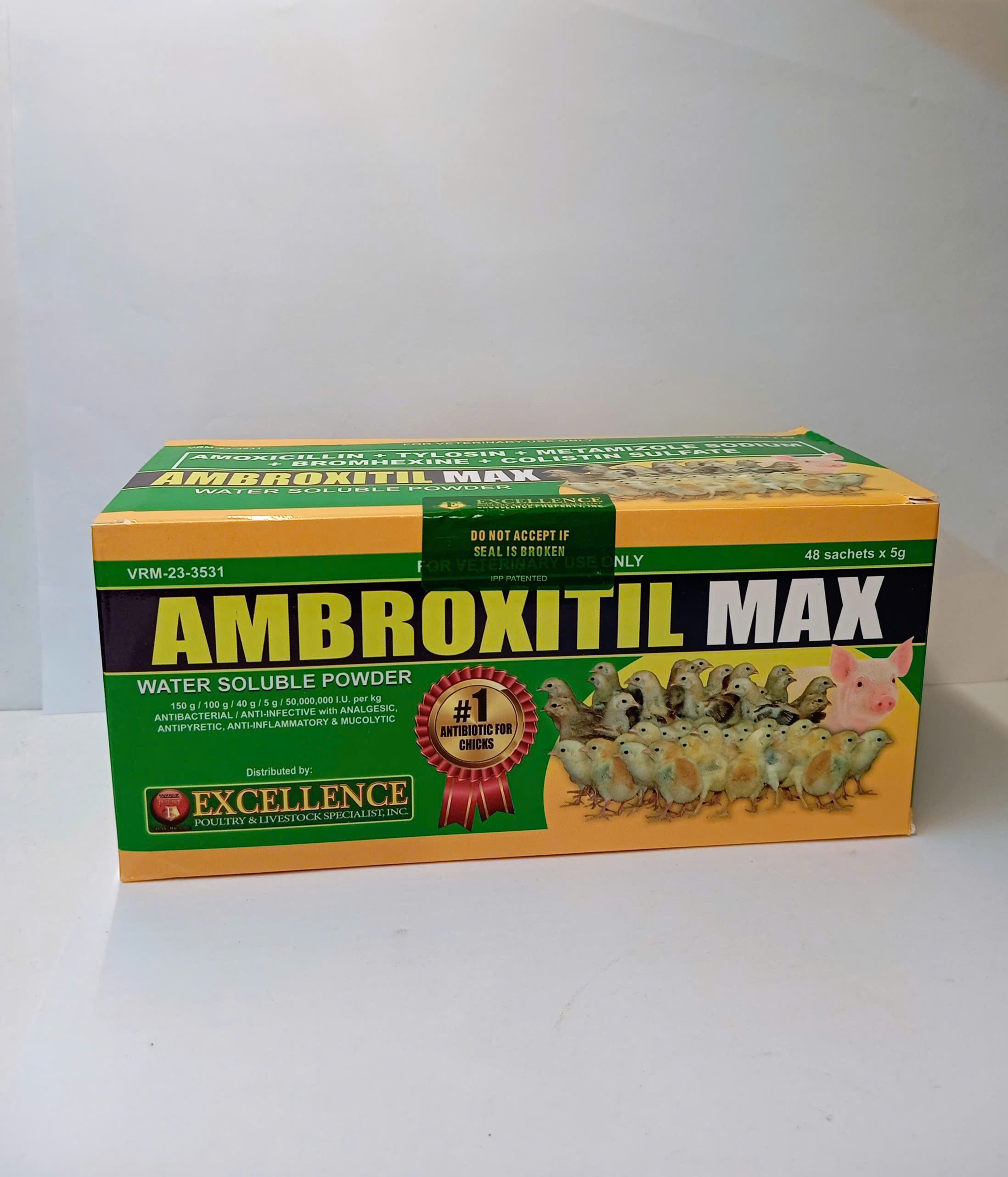 AMBROXITIL là sự kết hợp giữa hai loại kháng sinh phổ rộng là Ambroxicilin & Tylosin. Ngoài ra nó còn có Bromhenxine tan đờm, nhớt giúp thông thoáng đường hô hấp.